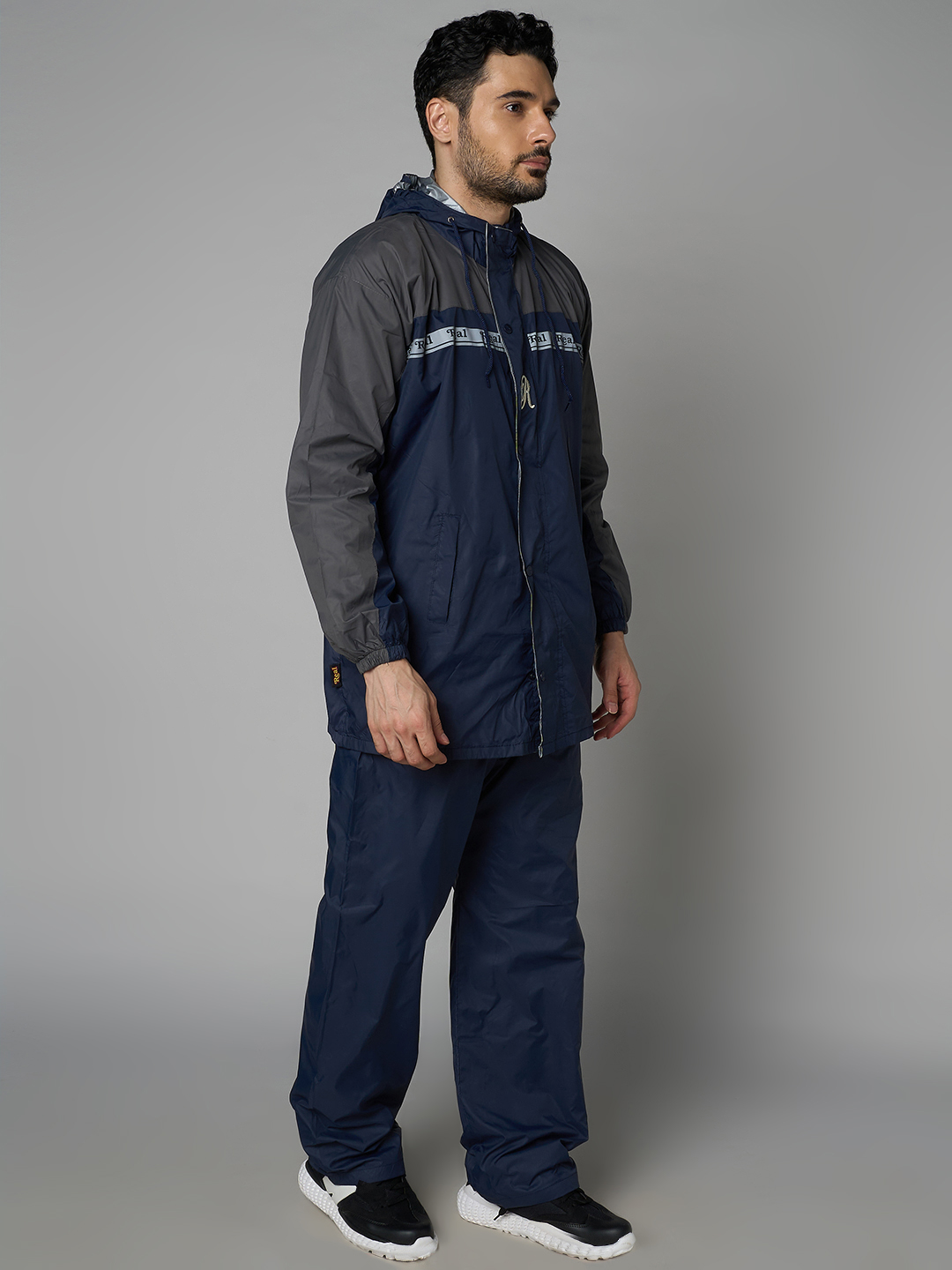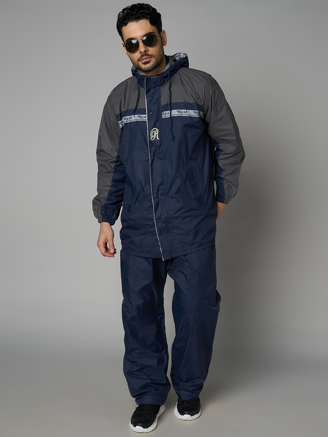Real Raincoat for Men Waterproof for Bike Riders with Adjustable Hood along with Inner Pockets, Reflected Stickers, Stylish Reversible Waterproof Rainwear Suit with Polyster Jacket, Pants and Carrying Pouch, MERCURY
